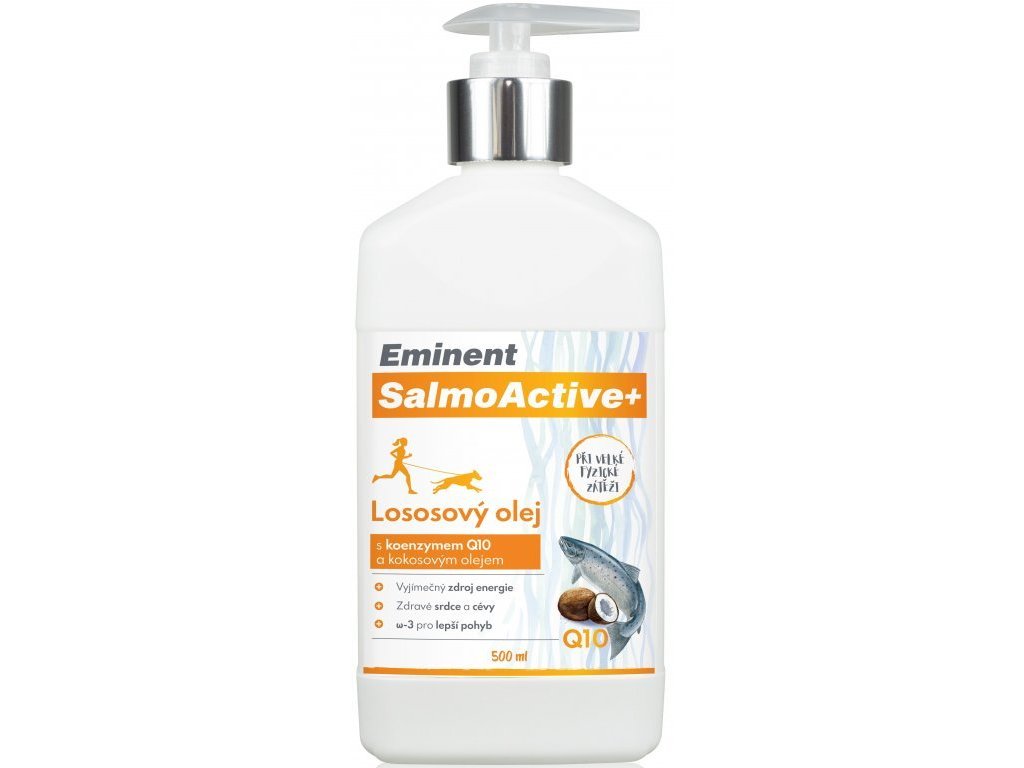 EMINENT SALMO ACTIVE+ je tak ideálním doplňkem stravy pro psy, kteří jsou pravidelně vystavováni vysoké fyzické námaze a potřebují specifickou podporu pro své tělo a mysl. Přidejte tento kvalitní lososový olej do stravy vašeho sportovního psa a sledujte, jak dosahuje vynikajících výsledků jak na poli sportu, tak ve zlepšení celkové kondice a zdraví.